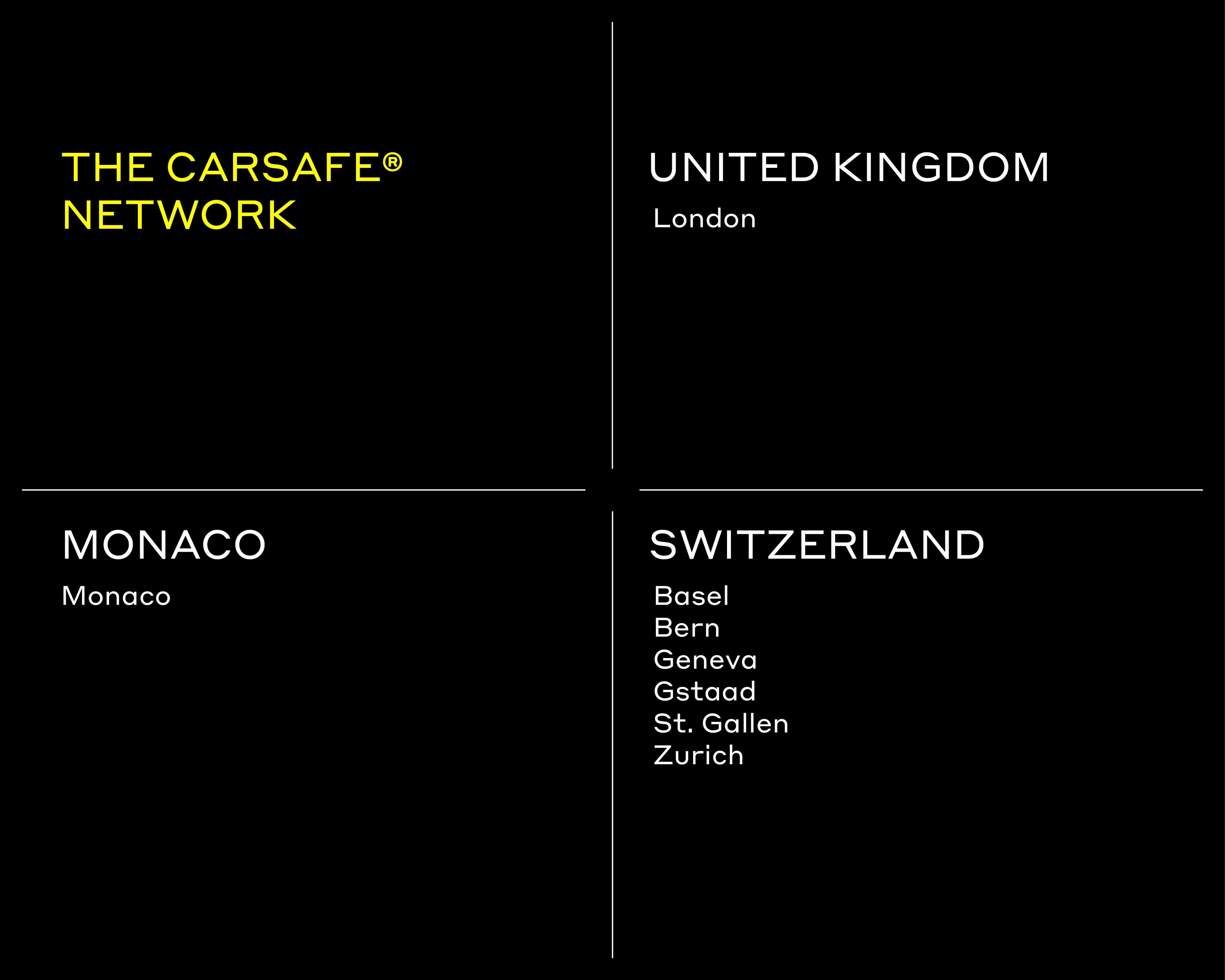 A collector’s car is more than just a vehicle—it’s a story on wheels, a tribute to craftsmanship, a legacy in motion. It deserves more than to be locked away in a garage. In THE CARSAFE® Network, your automotive treasure is kept in a climate-controlled, discreetly monitored environment, whether for a season or a lifetime. Our state-of-the-art facilities in Basel, Zurich, Gstaad, St. Gallen, Monaco, and London ensure that your vehicle remains in perfect condition. Always protected. Always ready.